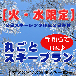 《火・水の宿泊限定!!1泊2食付きプラン、スキー2日券、スキーレンタルセット2日、