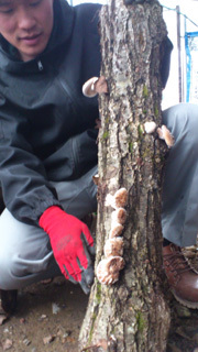 今日は雨ということで、当ホテルのしいたけハウスでの作業。
