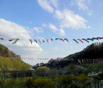 「道の駅 南きよさと」では、大漁の鯉のぼりがなびいています!
