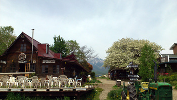 《滝沢牧場からの小梨の木と八ヶ岳》